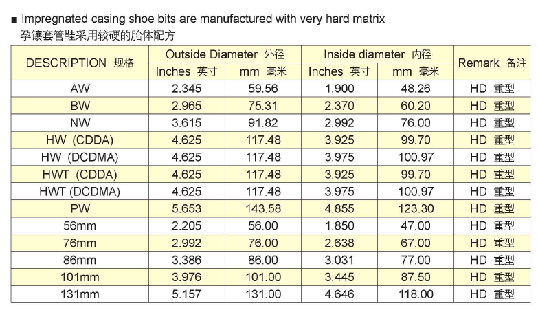 The inner diameter of the casing shoe is sufficiently large to permit free passage of drill bits and core barrels in corresponding sizes.