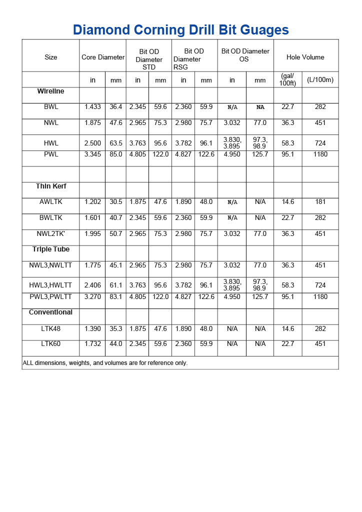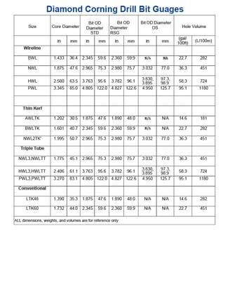 Surface set diamond bits can be used with any type of core barrels. By varying the diamond grade, size, quality and matrix hardness and crown shapes, the user can satisfactorily drill and core hard and homogeneous formations.