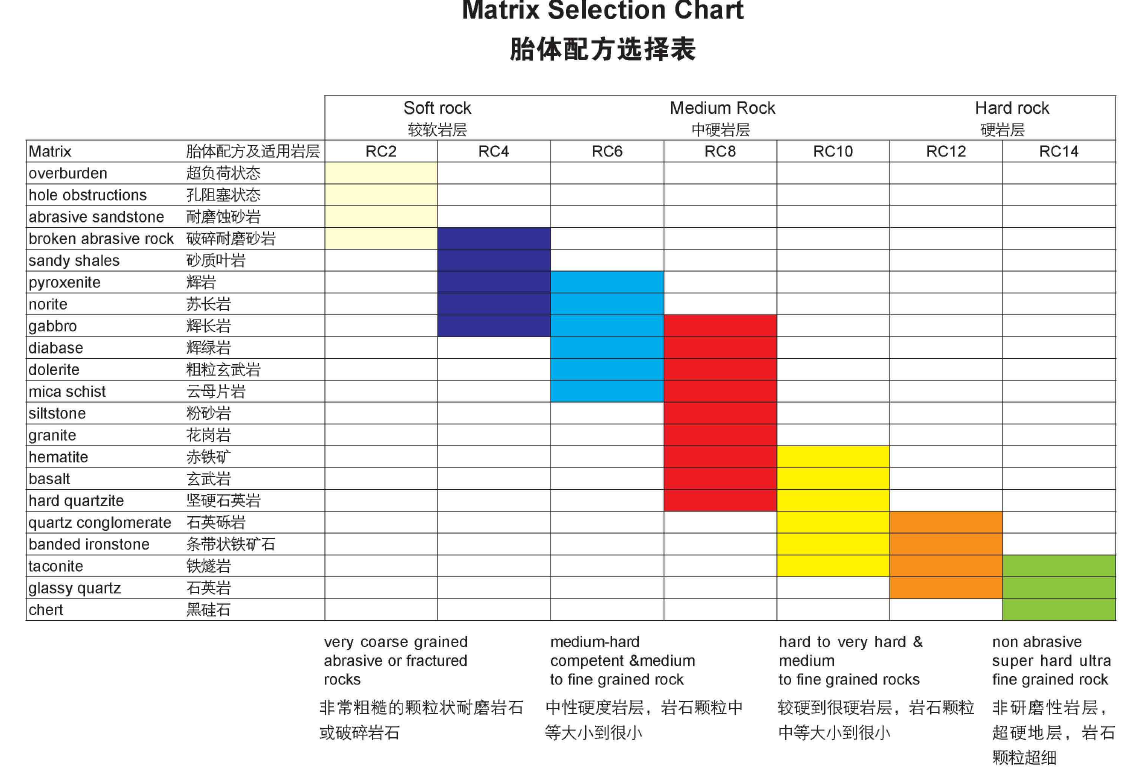 Variances in matrix metallurgy allow the customer to select a Series bit to suit the rock hardness parameter being drilled.