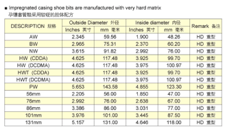 To avoid excessive matrix wear at the leading edge of each segment, tungsten carbide inserts are fitted on each side of the waterway. This kind of bit can not be used in broken or loose formations.